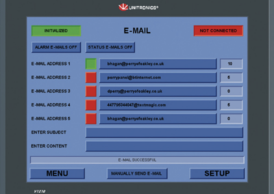 The dryer history is recorded – input and output screens display current panel conditions to aid fault diagnostics. When the Perry dryer is connected to the internet, diagnostics and status reports can be sent directly to a smart phone via email or text message.
