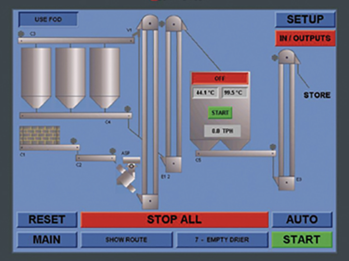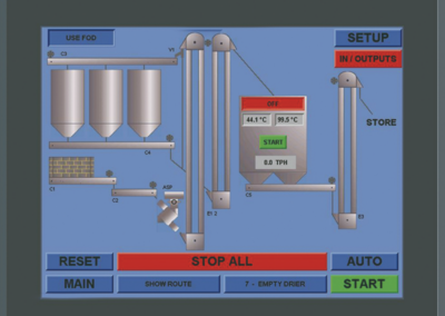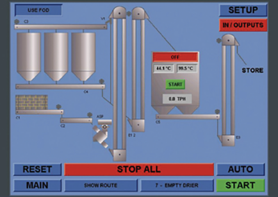 The Perry PLC Plant Control Panel is an advanced piece of technology that gives the dryer operator a clear, visual representation of the machines and routes, along with offering advanced diagnostic capabilities & remote control, when the panel is connected to the internet.